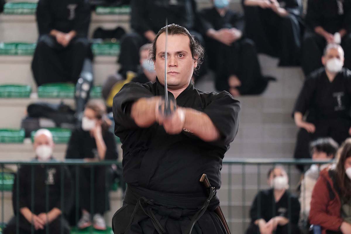 Molto più teso, soprattutto quest’anno, con il passaggio fra terzo e quarto dan che prevede l’introduzione di un kata di koryu per la prima volta. Questo ha aumentato la tensione, penso che si tratti di un passaggio molto importante. In ogni caso, a prescindere da questo, c’è sempre dello stress in più perché tutti quelli che si incontrano hanno come minimo un anno di pratica in più in quella categoria, quindi il proprio iaido dovrà essere di livello adeguato a una simile aspettativa.