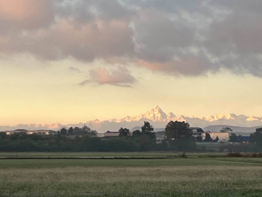 - Enzan no metsuke nella vita quotidiana: Allenare lo sguardo a posarsi su un punto lontano — come le montagne all’orizzonte — usando la visione periferica per catturare il contesto. Per esempio, al mattino durante la passeggiata con i cani ho la fortuna di vedere di fronte a me il Monviso (iconica montagna piemontese a forma di cuneo). L’occasione è perfetta guardo la montagna innevata lontana e contemporaneamente controllo cosa fa il cane anziano vicino a me. In sintesi alleno lo sguardo camminando.